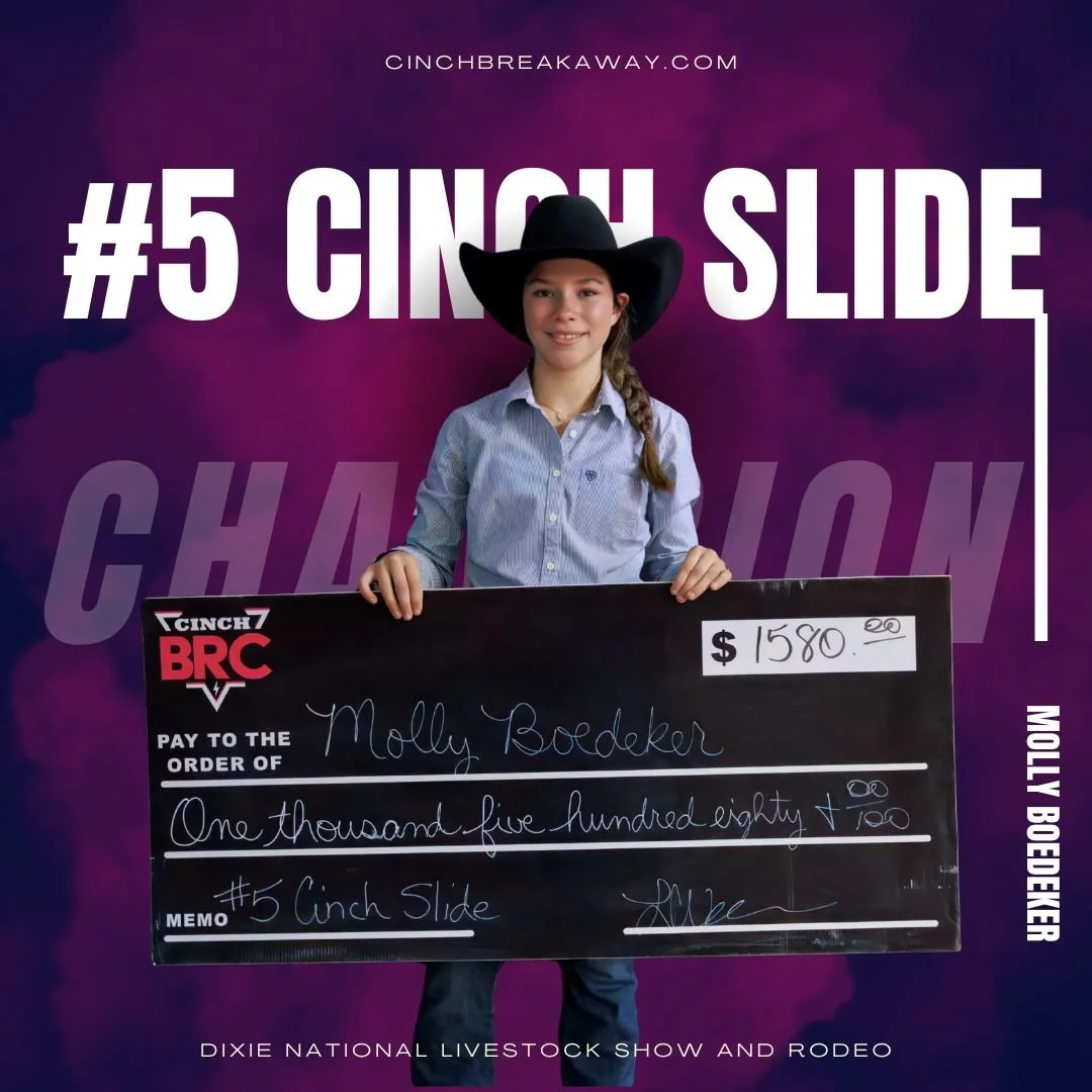 The #5 Cinch Slide delivered another competitive round, and Molly Boedeker once again proved her consistency. With solid runs across the format, she captured the championship and added $1,580 to her weekend total.